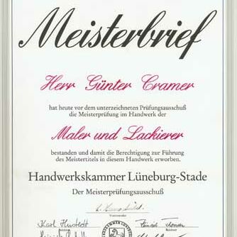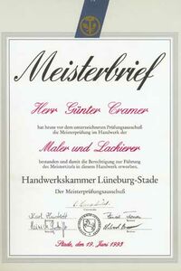 - 1993 Meisterprüfung als Maler und Lackierer